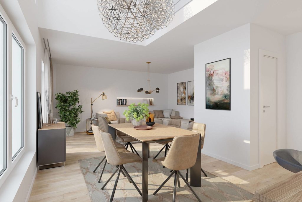 Eines der Highlights des Citylife 148 edition ist der Luftraum, der den Wohn-/Essbereich unten mit dem Schlaf- und Kinderbereich im Obergeschoss verbindet. Lassen Sie sich beeindrucken.