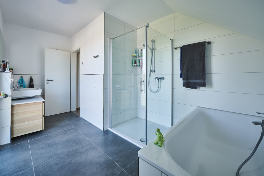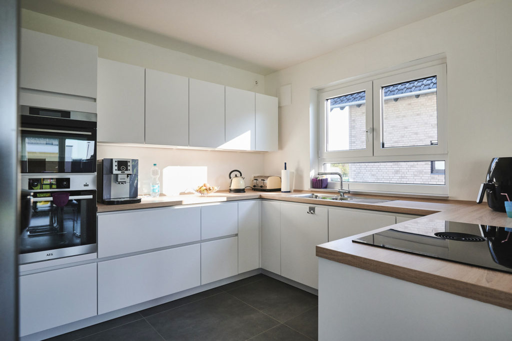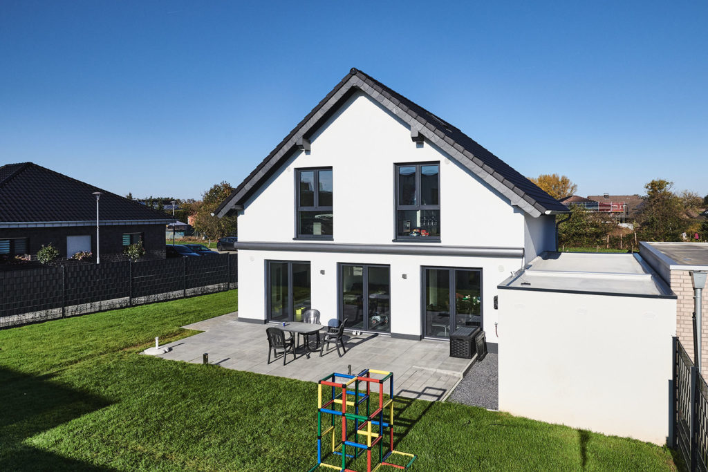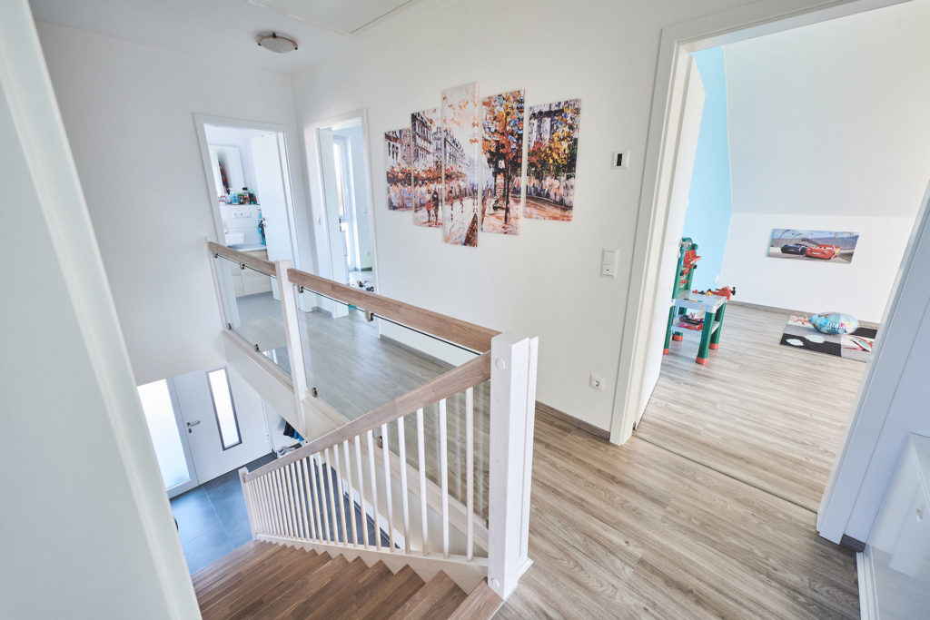 Natürlich im positivem Sinne. Denn die Familie aus Nordrhein-Westfalen ist froh mit ihren zwei kleinen Zwergen das neue Eigenheim bezogen zu haben. Kinder und Eltern haben hier gleichermaßen ihre Rückzugsorte. An alles haben unsere Architekten gedacht. Die Zimmer sind klassisch und funktional aufgeteilt. Besonders die großen Fensterfronten spenden den Wohnräumen viel Licht und Wärme. So kann man sich einfach nur wohlfühlen ...